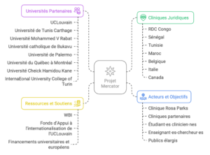 L’émergence des cliniques juridiques transrégionales dans le cadre du Projet Mercator s’inscrit dans un contexte marqué par la nécessité d’adapter les dispositifs pédagogiques et de recherche aux enjeux contemporains de la gouvernance migratoire. Conçu comme un outil de formation pratique et critique, le Projet Mercator vise en ce sens à renforcer les capacités des jeunes juristes en matière de droit international des migrations, tout en favorisant un dialogue transrégional entre les universités européennes et leurs partenaires du Sud.